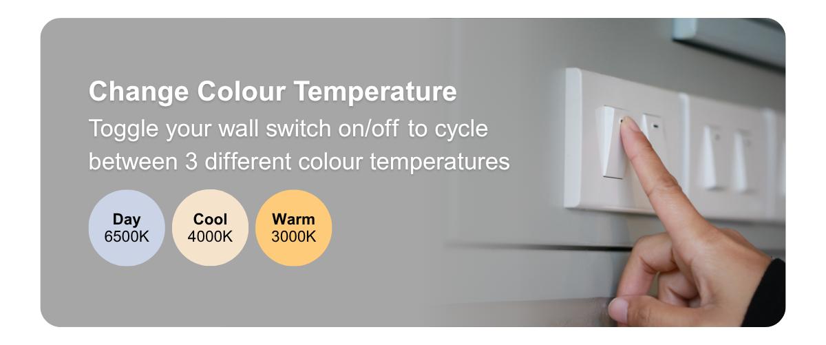 Colour Temperature: Tri-colour, Day 6500K-Cool 4000K-Warm 3000K